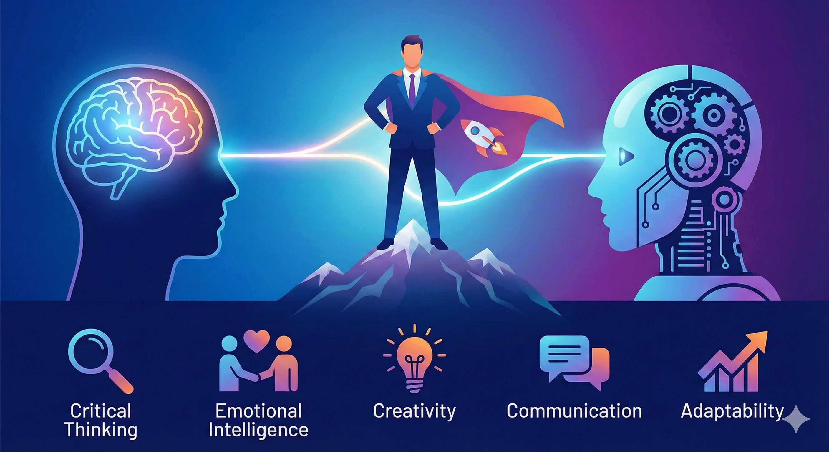 - Page purpose: Explain the essential skills that make someone “AI‑proof”—able to work effectively with AI, stay relevant, and reduce fear about being replaced.